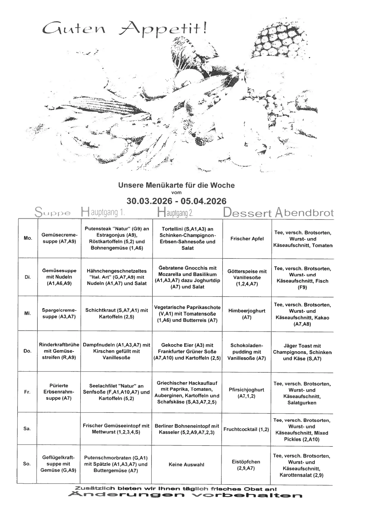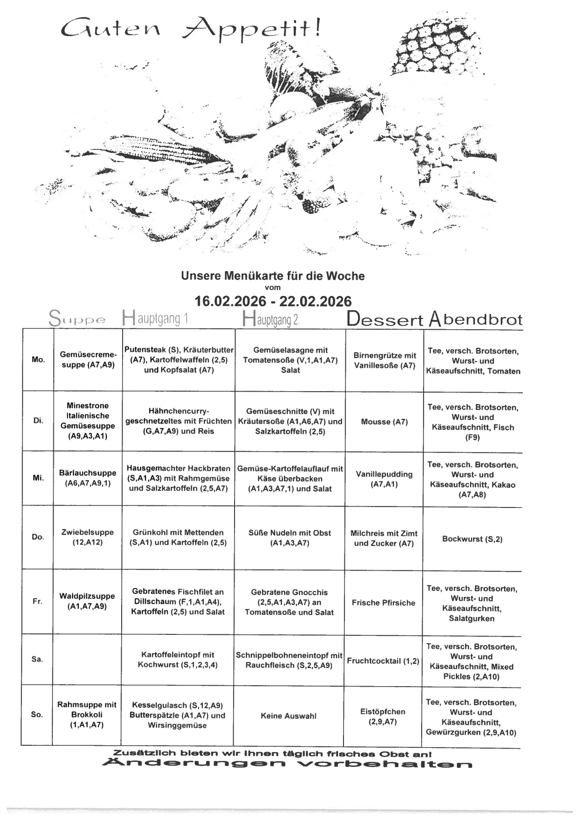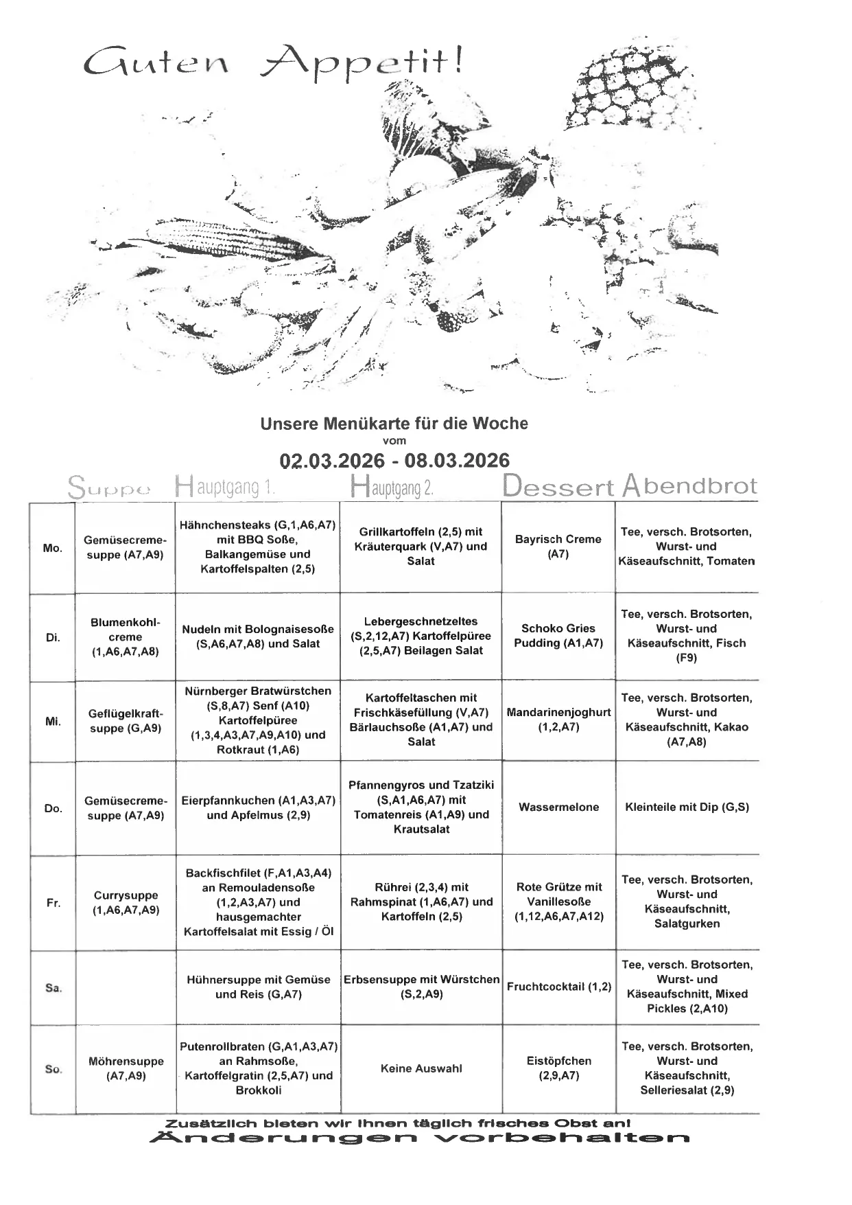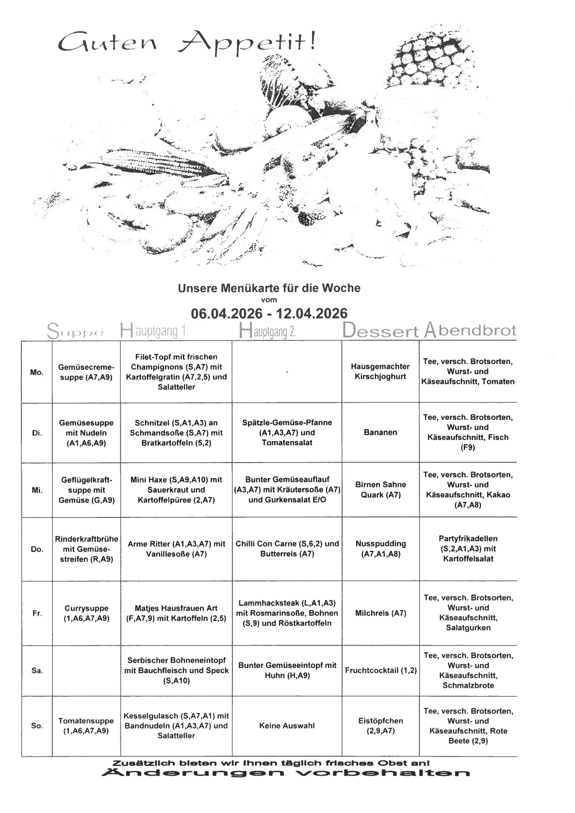 Unsere Wochenkarte