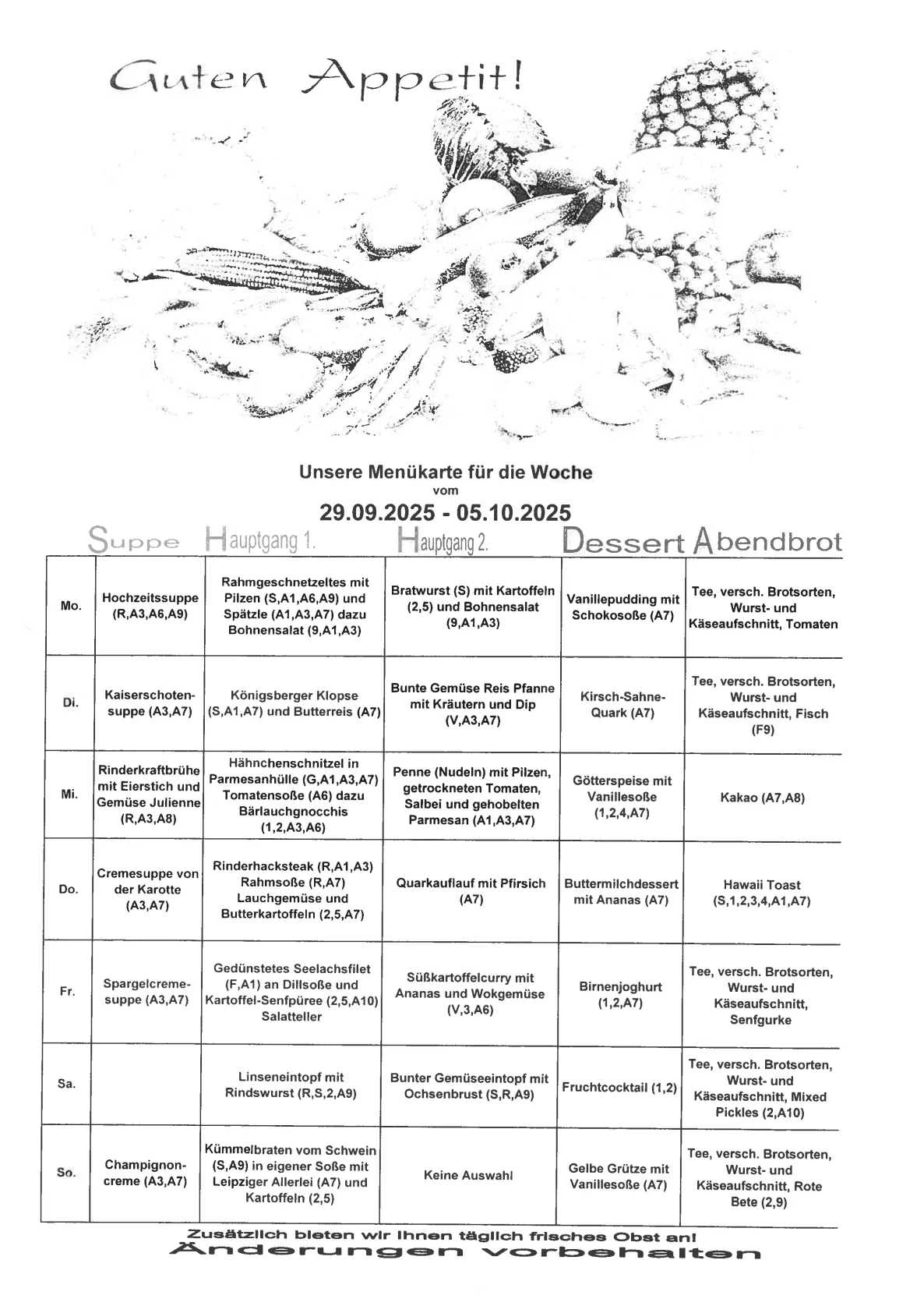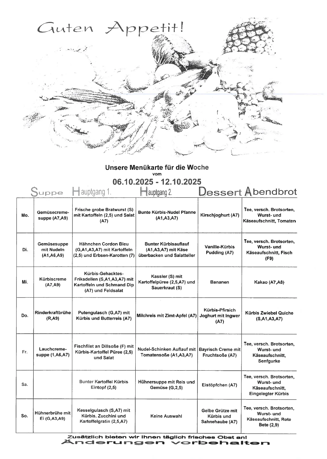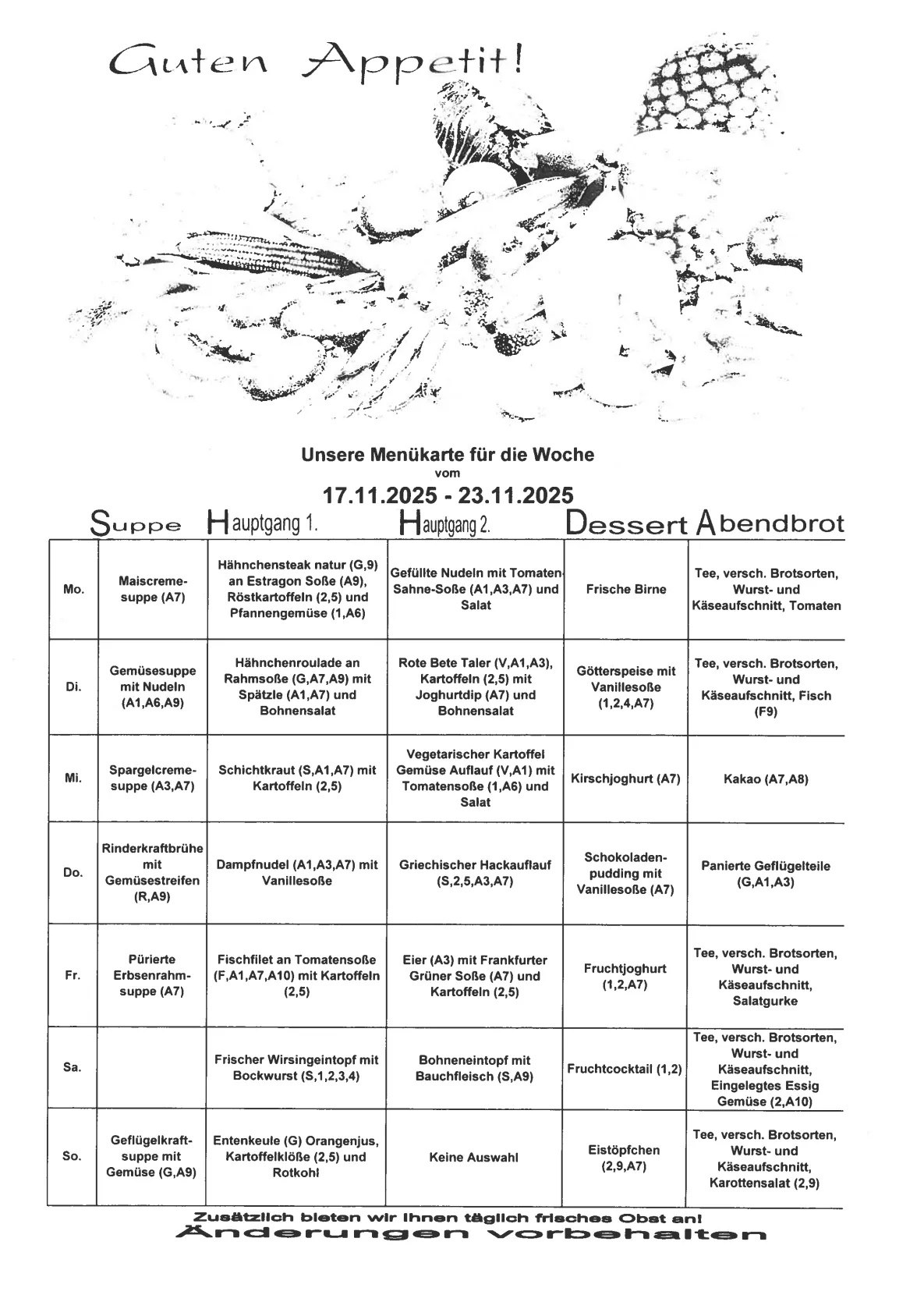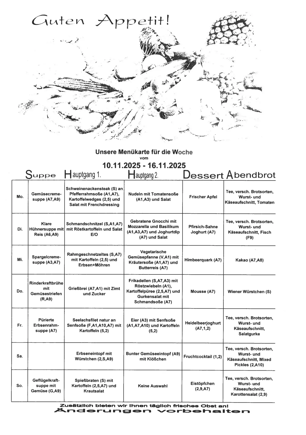 Unsere Wochenkarte